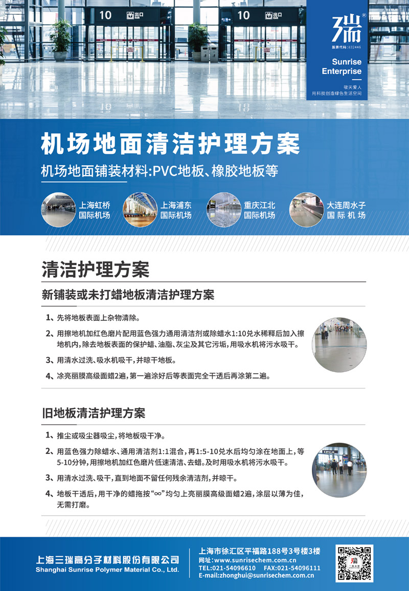 三瑞高材拥有多年的机场清洁护理实践经验,产品应用遍布全国各地大型机场,在行业内久负盛名,企业始终致力于通过产品和服务为客户解决实际问题、创造价值。我们将一如既往的坚持品质和完善服务,为绿色出行提供助力,为旅客安心、顺心、舒心的机场环境贡献自己的一份力量!