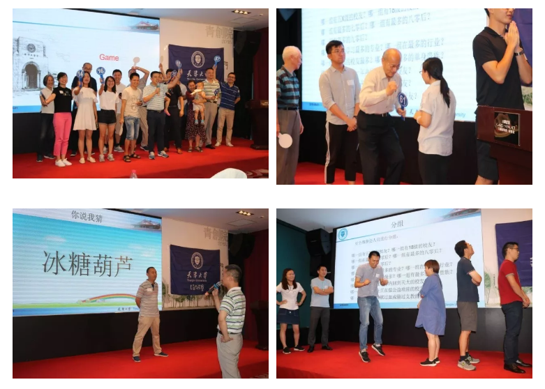游戏环节分五个小组,分别由团队建设、问题竞答、成语传递和你说我猜等环节组成。其中的“青年湖队”和“敬业湖队”令大家纷纷忆起北洋旧时光。活动现场充满欢声笑语,八十高龄老校友和零零后小鲜肉校友的同台游戏,让这场跨越半个多世纪年龄差的聚会变得鲜活起来,而无年龄差的校友情谊让本互不相识的校友渐渐熟悉起来。