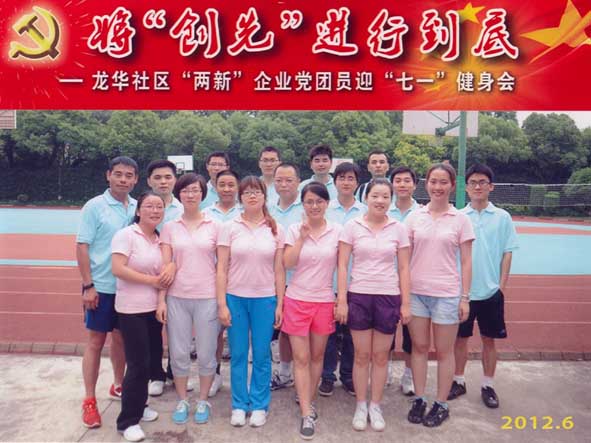 2012年6月9日,在迎接建党91周年之际,龙华社区(街道)综合党委组织举办了社区“两新”企业党团员工迎“七一”健身会。