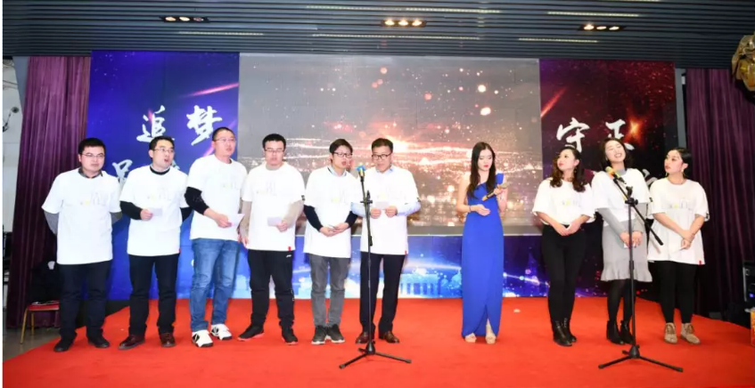 晚会尾声,三瑞高材的新年礼物已为大家准备好,我们穿上了预示着纯真美好的纯白色T恤给大家拜个早年,在最后我们不说再见,因为再见就是更好的明天。