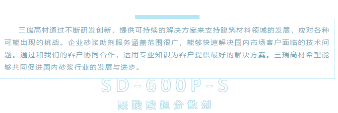 白色至粉红色水溶性粉末,具有优异的分散性能和材料适应性,能显著改善水泥基材的流动性和铺摊性,赋予材料较高的早期强度。本产品能广泛应用于砂浆体系中,如高端面层自流平砂浆,早强型砂浆及超早强灌浆材料和修补砂浆等,可显著提高砂浆流动性,并有利于材料的早期强度发展,提高施工效率。