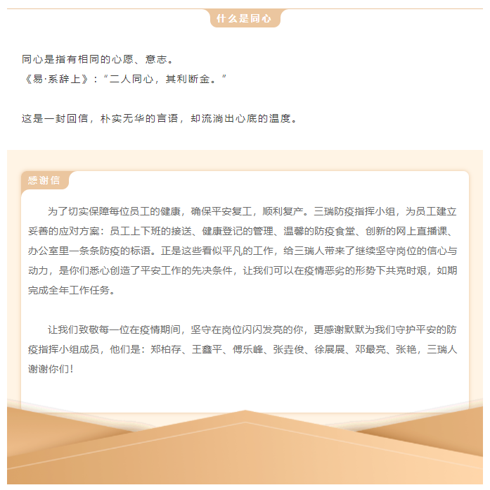 所有三瑞人共同怀抱着一颗初心。创业创新,我们将在功能特殊化学品的研发、生产和销售的道路上继续前行;科技聚力,我们为提供工程浆体和工业涂布浆体的技术解决方案而努力奋斗。